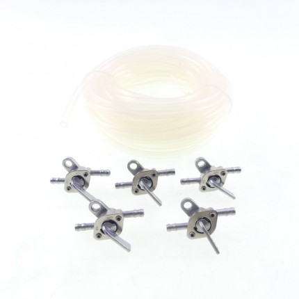 10 Meter Benzinschlauch und 5 neue Benzinhähne mit 6mm Benzinschlauchanschluss und Befestigungsloch.