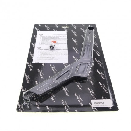 Edle Abdeckung für die Schaltwippe. Material: Billet Aluminium, CNC bearbeitet, schwarz eloxiert. Moto Guzzi Logo gelasert.